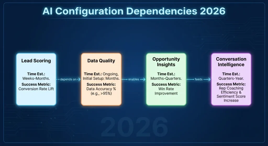 Critical Finding: Salesforce’s 2026 AI models require minimum 6 months of historical data for accurate predictions. If migrating from another CRM, budget for data enrichment services (typically $15,000-$35,000).